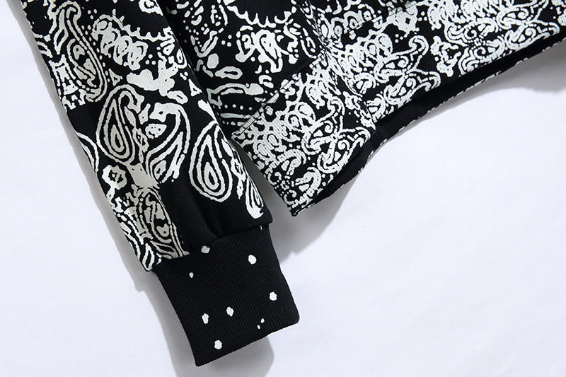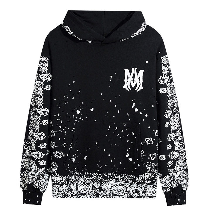 Amiri terry hoodie. Bleached paisley and graphic pattern printed throughout.