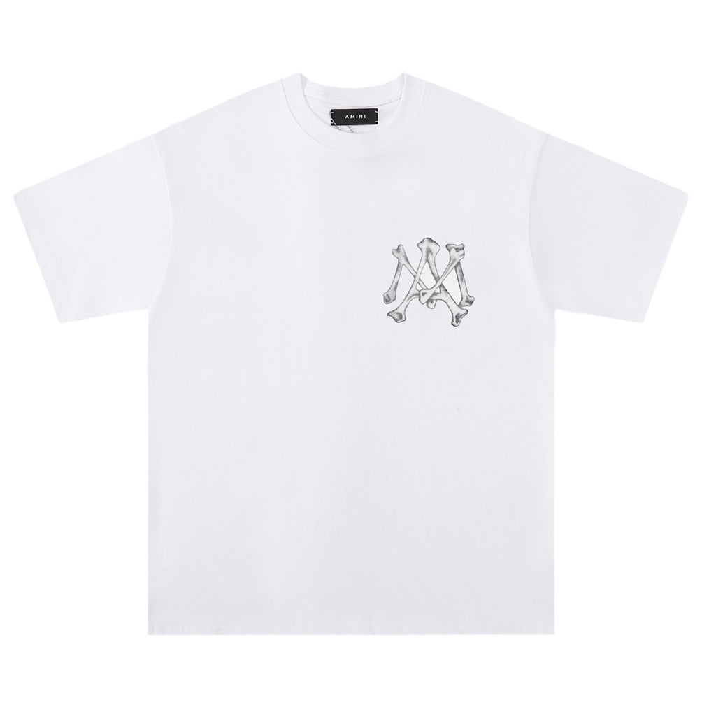 Bone graphics forming a logo adorns this t-shirt. Crewneck Short sleeves Pullover style Cotton Dry clean Made in USA SIZE & FIT About 27" from shoulder to hem ABOUT THE BRAND Designer and California native Mike Amiri got his start making handcrafted pieces for rockstars to wear on stage. He brings the same L.A. rocker aesthetic to his eponymous label, which is known for its deconstructed jeans, leather jackets and broken-in flannels.