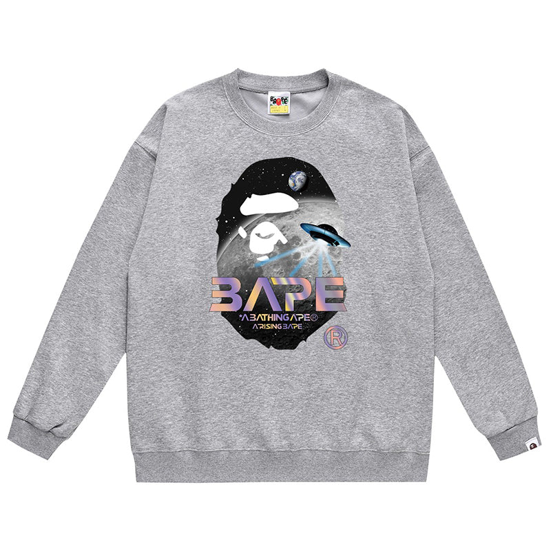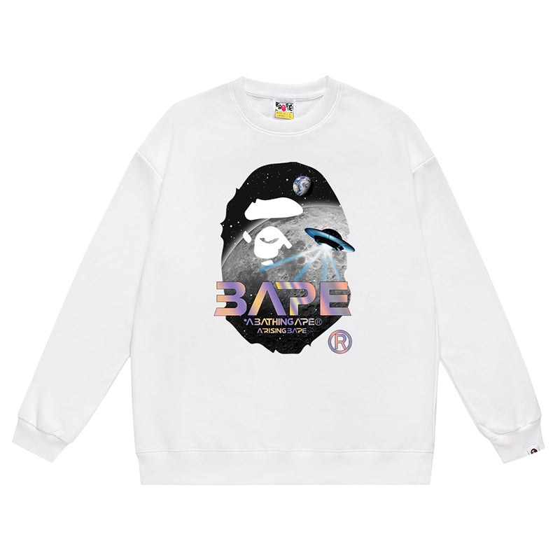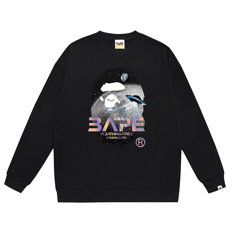 BAPE Ape Head Flying Saucer Laser Letter Pattern Print Sweatshirt