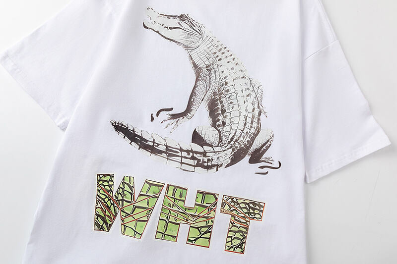 Off White Crocodile Pattern Printed T-Shirt