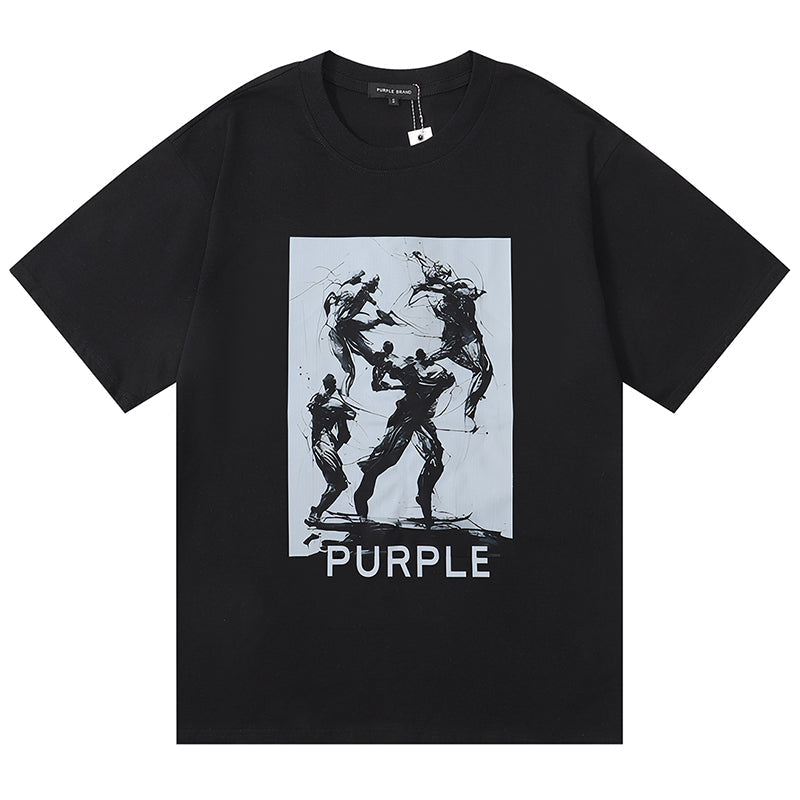 Purple Brand Logo Pattern Print T-Shirt