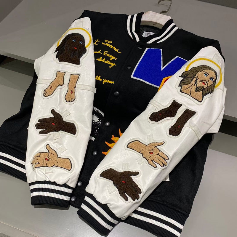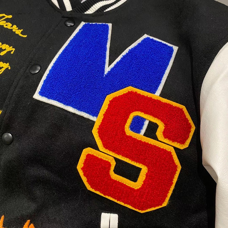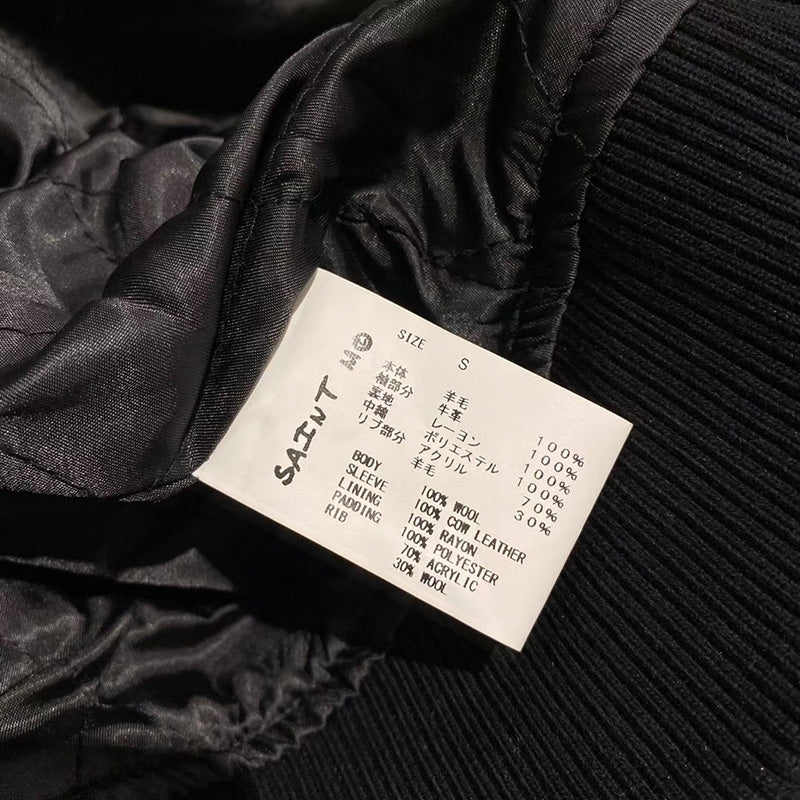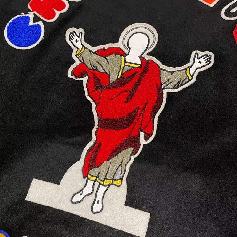 Saint Michael Loose Baseball Jacket With Embroidered Badge -Black
