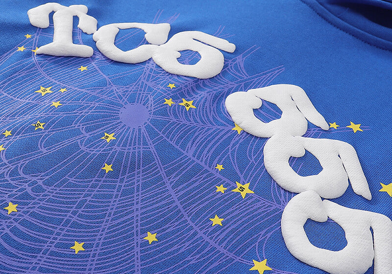 SP5DER TC5555 Spider Web Hoodie-Blue #8206