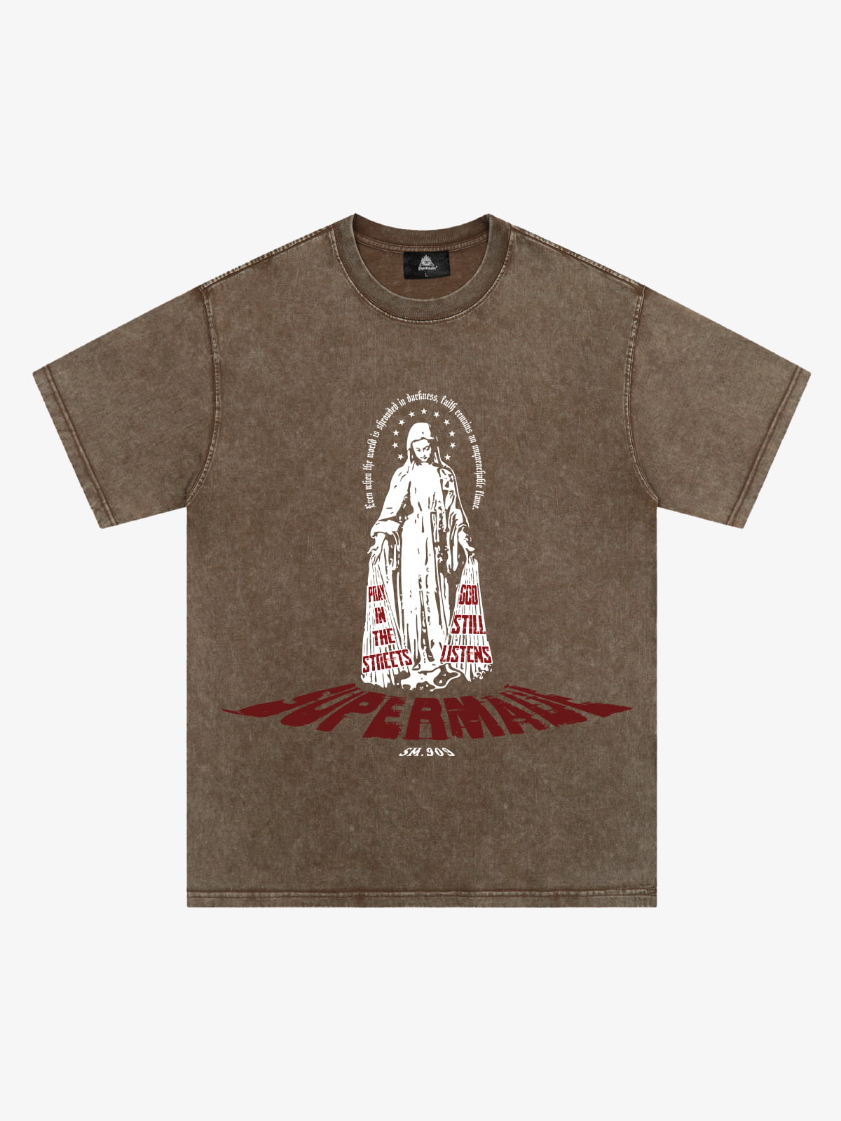 • Unique religious-inspired graphic adds a spiritual touch to your wardrobe